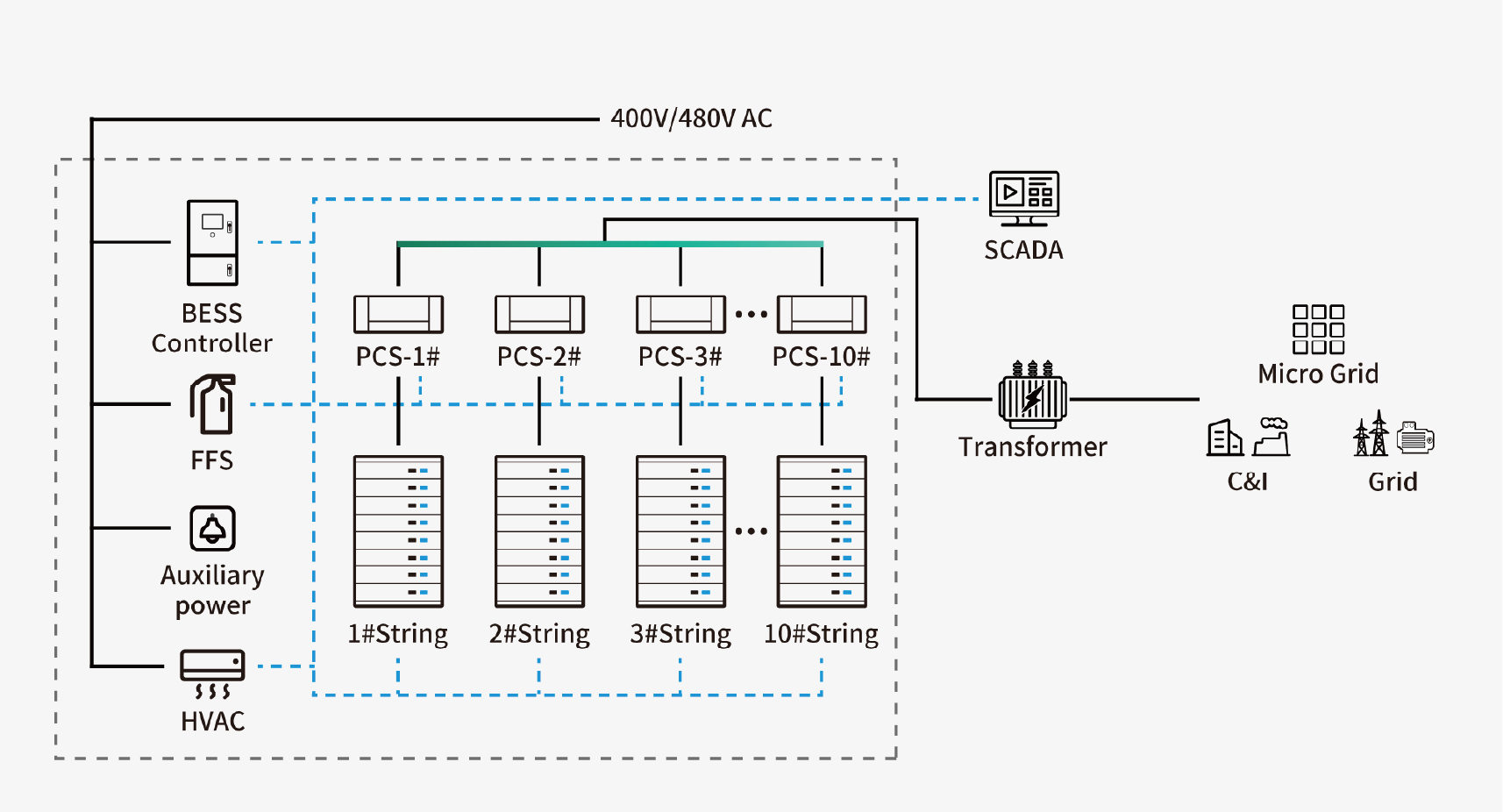 It is evident that ensuring available capacity for high reliability and availability is a fundamental assumption that are core conditions for effective and dependable long-term operation of the BESS, often overlooked aspect in financial assessments. With this consideration, we have designed a string BESS solution with the approach that enhances the comprehensiveness of BESS operation management and control while bolstering operational safety.