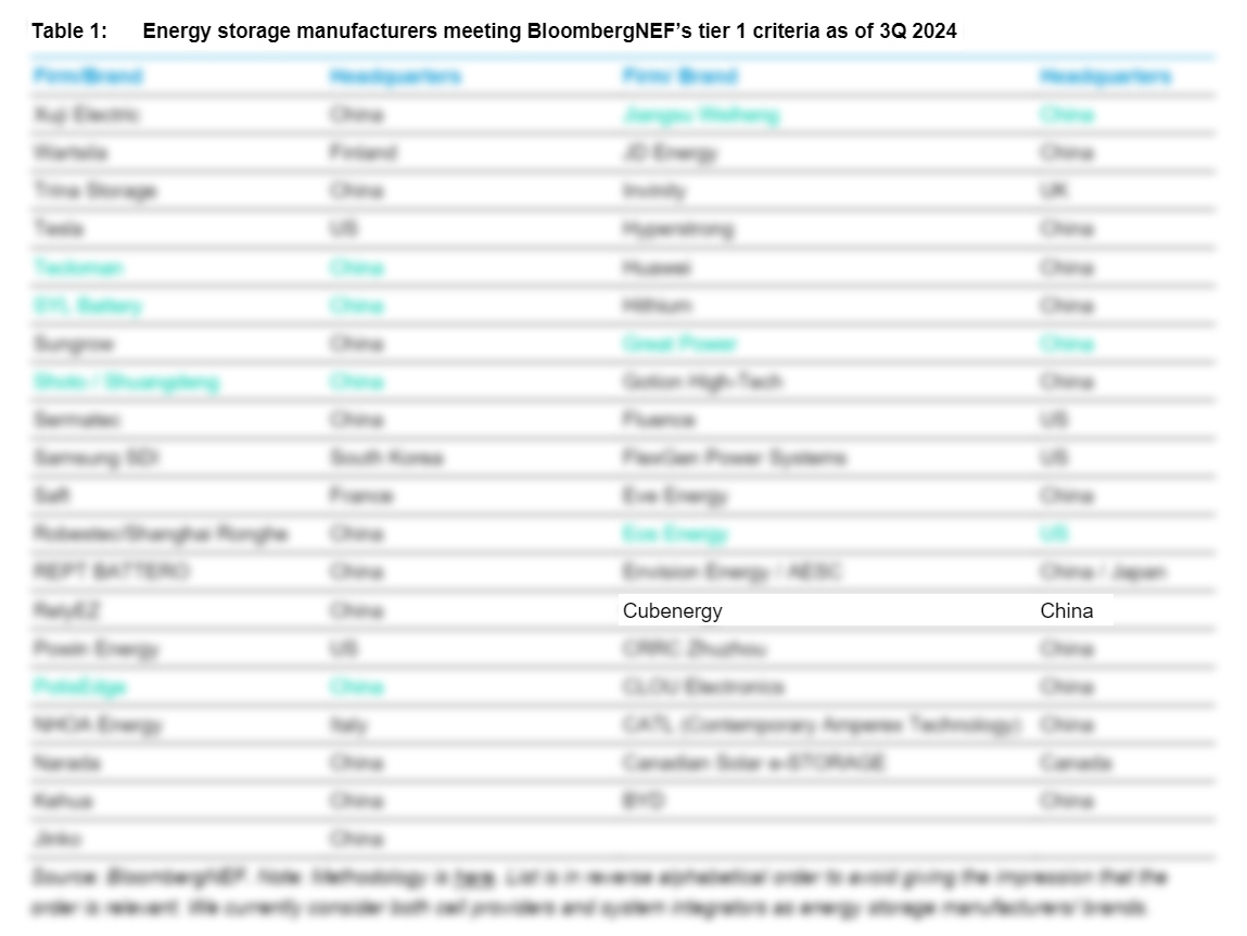 Q3 2024 BNF Tier 1 | 库博能源获评全球一级储能供应商