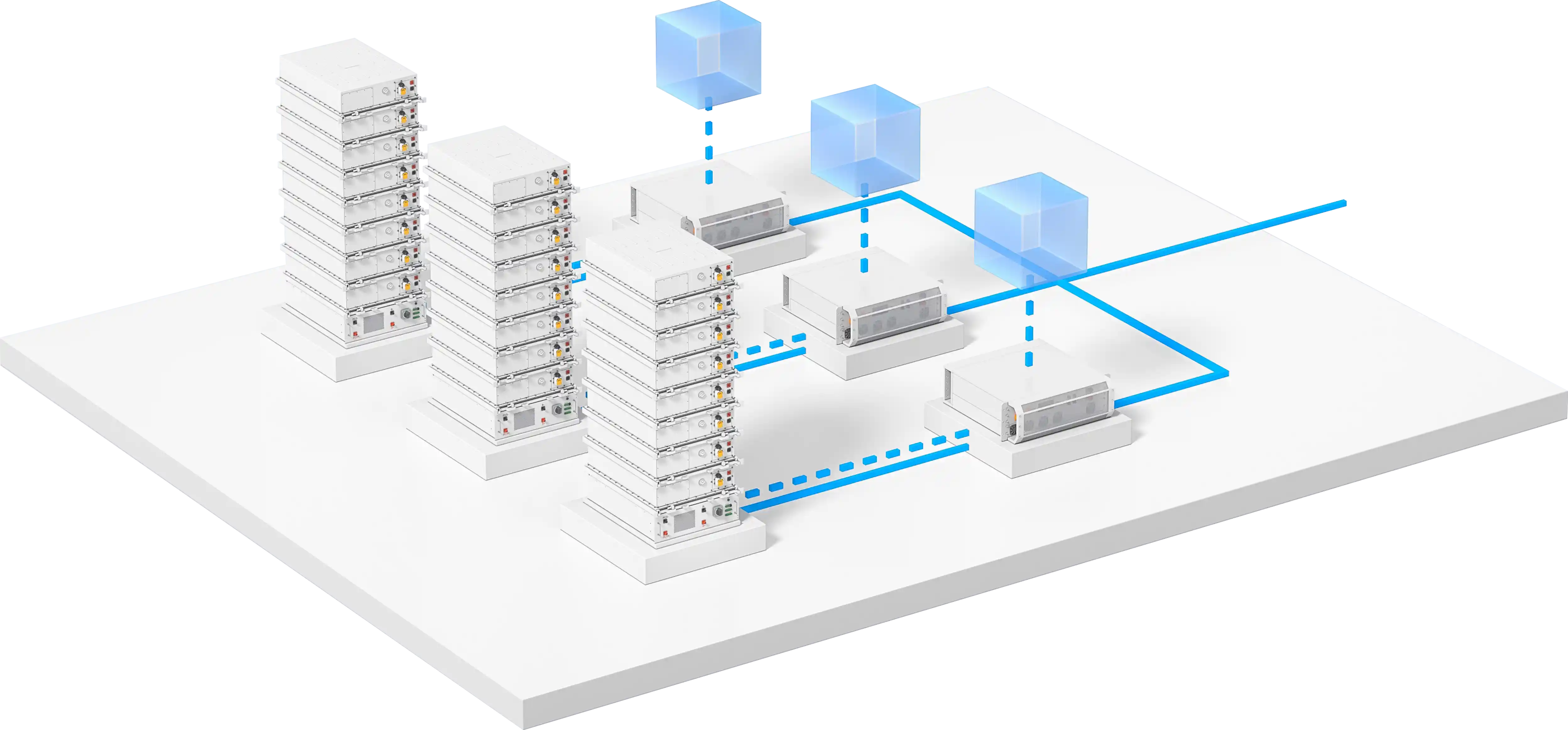 组串式储能系统代表在独立分隔的接入条件下,内部各个电池簇分别接入到各自对应的组串模块化储能逆变器然后在交流侧并网的储能系统。在这种拓扑结构下,单一封装分隔的储能系统内部,各个电池簇在直流电气系统回路上是彼此独立的,除了共享集中式消防、配电,封装以及制冷散热系统以外,其他从逻辑单元,充放电控制上均为独立。